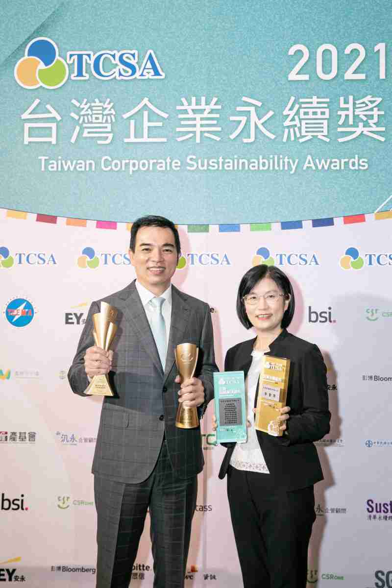 达在台湾永续奖所评比环境、、社会、、、治理等各面向的永续绩效均获高度肯定 (左:冰球突破光电总经理暨营运长柯富仁,,,右:冰球突破光电永续长古秀华)