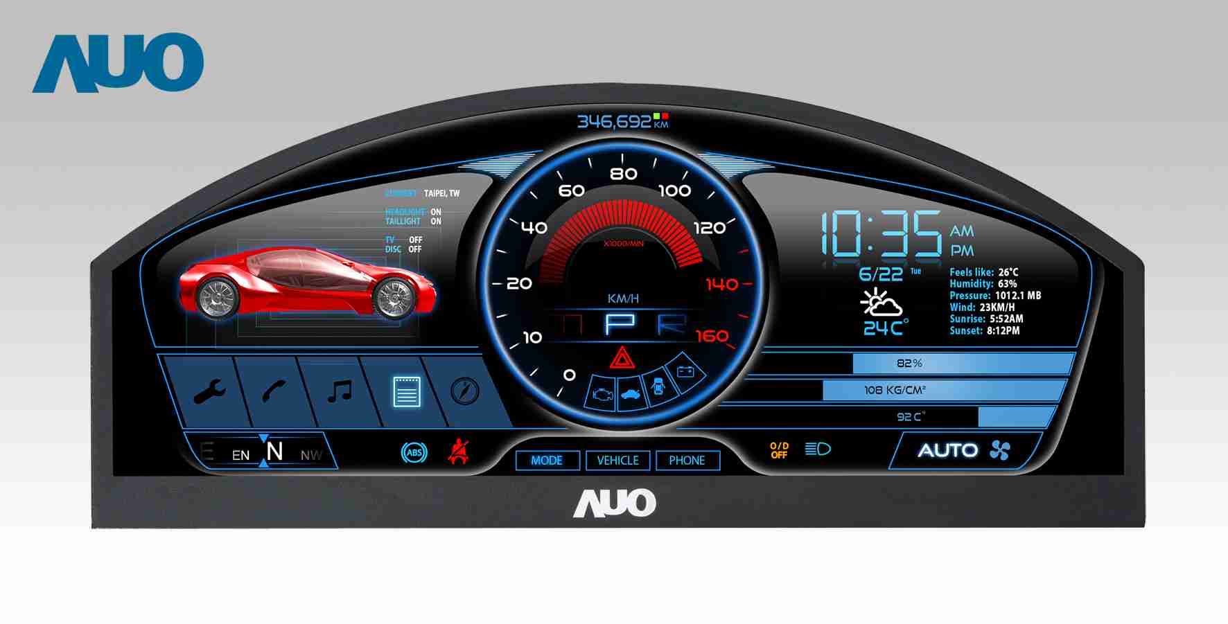 冰球突破 12.3吋超高解析异型切割车用面板,,,拥有流线外观及精细画质
