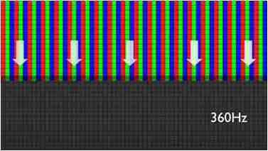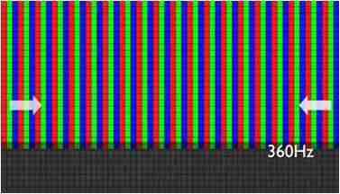 传统液晶驱动是从左到右单向进行,,在画面更新速度愈来越愈快的情况下,,,位于驱动线路末端的右下角区域,,画素的闸极来不及在短时间内获得足够电压,,,,无法显示出正确的颜色资讯。。 |